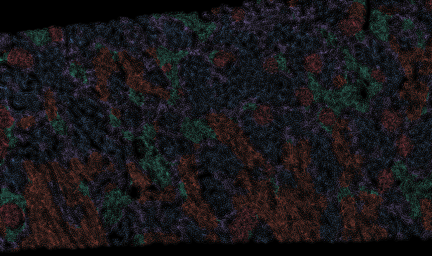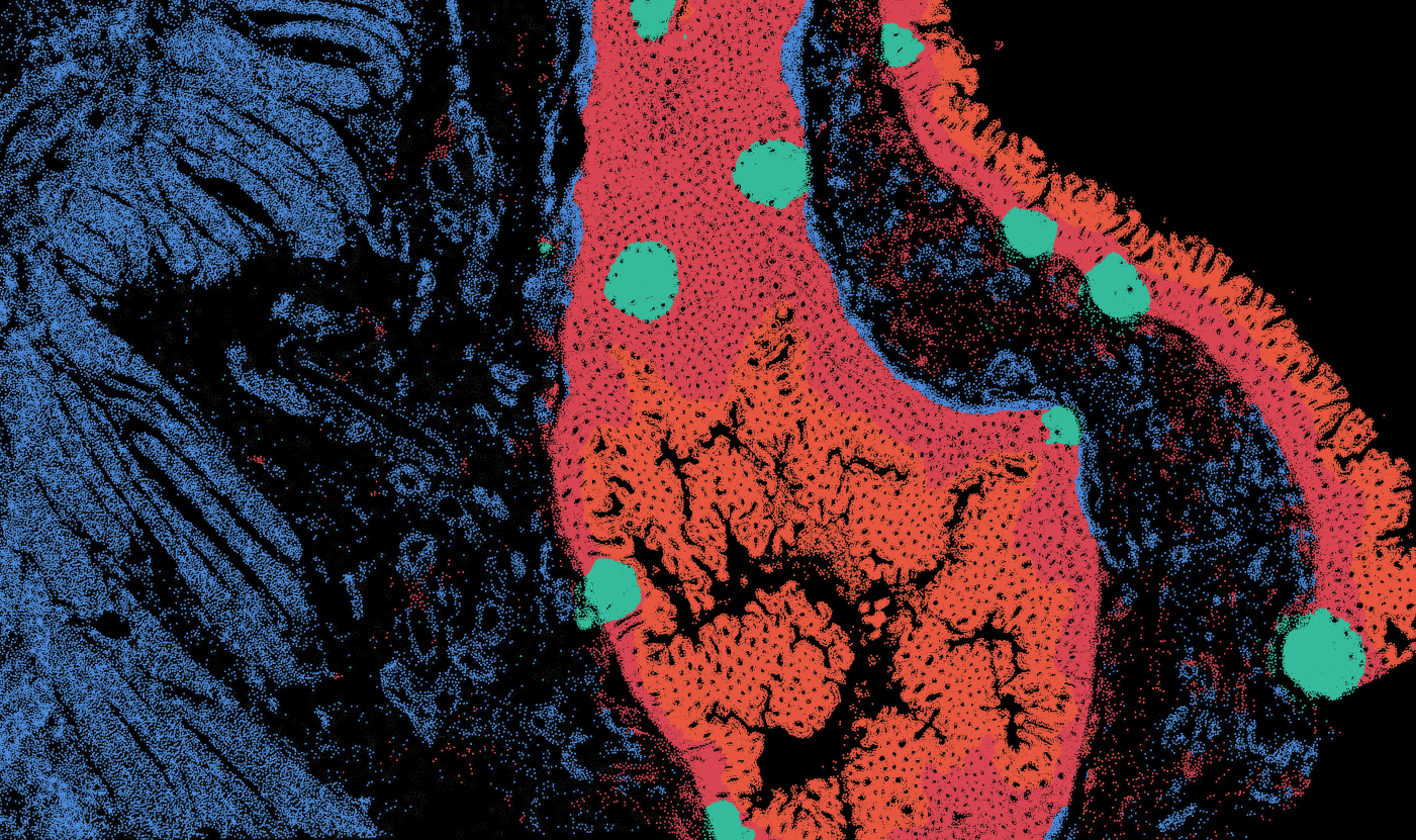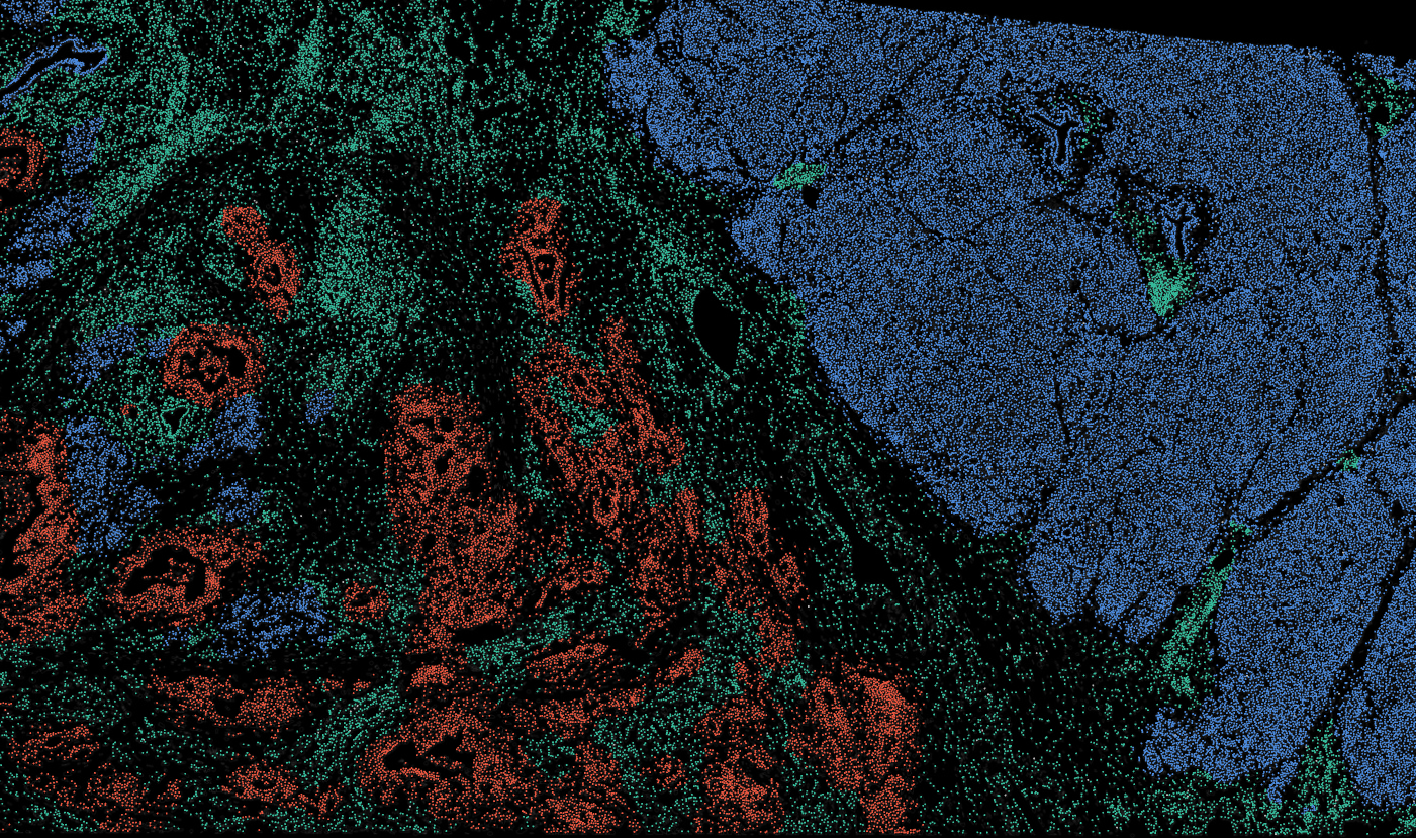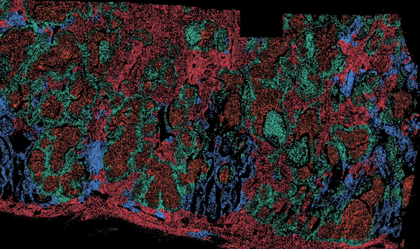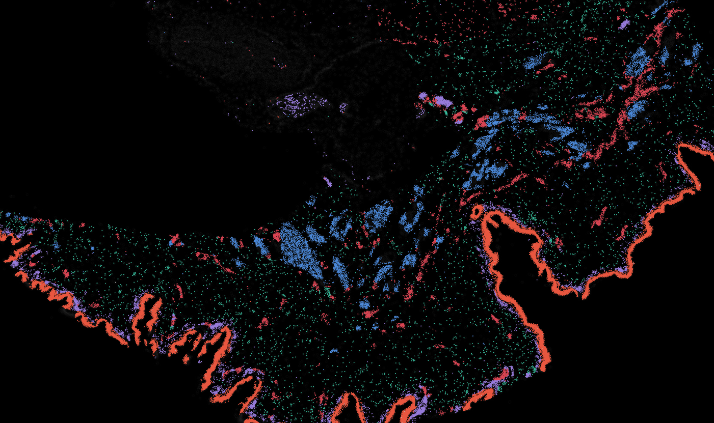 The segmentation module is designed to help researchers explore tissue architecture at multiple levels of detail, depending on their scientific question. Users can begin by dividing the tissue into major anatomical structures to gain a broad overview of the spatial landscape. From there, they can zoom into a specific region of interest and further segment it into sub-tissue compartments, enabling more refined analysis of microenvironments and localized biological processes.
